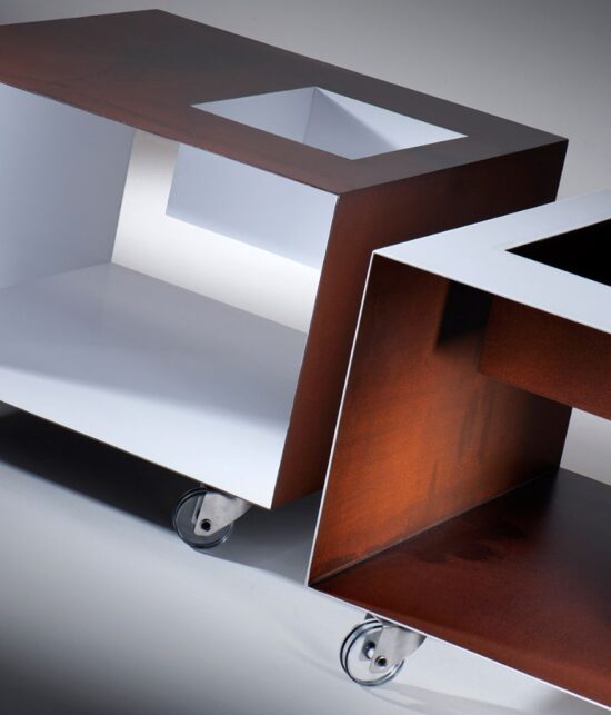 Barová židle vyrobená z ručně patinovaného kovu. Sedák je ručně kovaný a jeho výšku je možné regulovat otáčením. K vyzkoušení u baru u nás v showroomu.