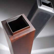 Interiérová čtyřhranná váza provedená z ocelového plechu, který je ručně broušen. K prohlédnutí u nás v showroomu.