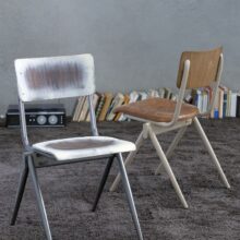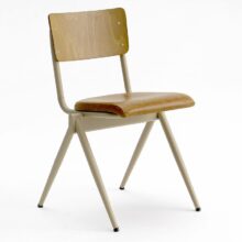 Židle z matného lakovaného kovu, sedák a opěrka ve dřevě